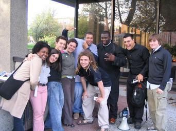 Keywords: NewPaltzDemonstrationAftermathCelebrate.JPG Organizers of a demonstration on the SUNY New Paltz campus celebrate 2005-10-21 own assumed Justin Holmes~commonswiki State University of New York at New Paltz