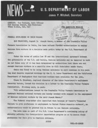 | Keywords: News from the U.S. Department of Labor, "Federal Stop-Order on Indio Farmer" (USDL-IX-59S56), San Francisco, August... - NARA - 296747.tif Scope and content This document is related to the w Bracero program Bracero Program a federally sponsored labor program from 1942 to 1964 whereby migrant/migratory laborers from Mexico were provided for seasonal mostly agricultural employment often on the farms of Californa growers The document provides insight into Hispanic/Latino/Mexican immigration and labor history including controversies which surfaced during the farm labor movement of the years thereafter General notes 296747 Local identifier Department of Labor Office of the Solicitor Region 9 San Francisco Office of the Regional Attorney 1965 - 1973 NARA's Pacific Region San Bruno NRHAS 1000 Commodore Drive San Bruno CA 94066-2350 1959-08-03 Record group Record Group 174 General Records of the Department of Labor 1907 - 2001 Record group ARC 503 Records Relating to the Mexican Labor Bracero Program compiled 1950 - 1964 Series ARC 296723 File unit Mexican Labor Program General Correspondence 1954 - 1965 File unit ARC 296745 Variant control numbers NAIL Control Number NRHS-174-REG9BRACERO-GENCORRESP-2 yes Other versions NARA-cooperation PD-USGov 1959 documents Bracero program Agriculture in California Bracero program Indio California M Mexican-American history Bracero Immigrants to the United States Bracero program 1959 in California Bracero program August 1959 in the United States Bracero program 1959 in agriculture Bracero program 1959-08-03 en Bracero program |