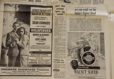 Keywords: newspaper adverts advertisement vintage goldfinger film tobacco british 1964