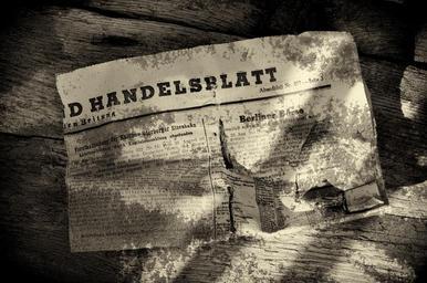 Keywords: newspaper daily newspaper trade newspaper crumpled font information antique old sand wood floor black and white recording