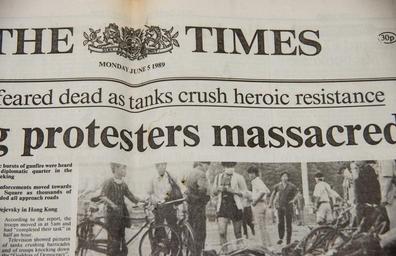 Keywords: newspaper historic front page photos headline print text tiananmen journalism 1989 times british