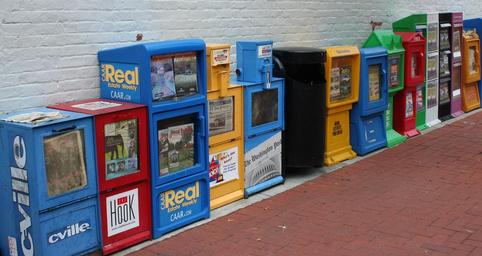 Keywords: newspapers pamphlets vending machines flyers journalism printed material papers pamphlet brochure booklet publication magazine marketing