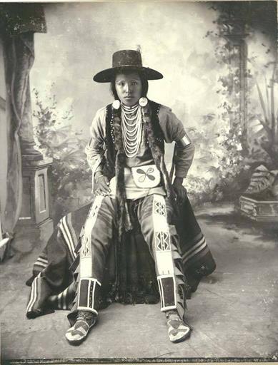 Keywords: Nez Perce Indian, Washington, 1899 (LAROCHE 165).jpeg Photograph Creator Frank La Roche Caption on image Nez Perces brave Studio portrait of a young man of the Nez Perce Washington State 1899 He is wearing a wide-brimmed hat earrings necklaces fur decorations around his shoulders a beaded bag arm bands trousers and moccasins He is seated on a blanket covered prop in front of a painted backdrop of an arbor Another shot from the sitting in NA907 Subjects LCSH Portraits-Washington State ; Nez Perce Indians--Clothing dress depicted place Washington state 1899 Institution University of Washington UWASH-LAROCHE-source accession number laroche 165 PD-old-auto-1923 1936 Information field Order Number LAR127 Nez Perce Fur clothing of Nez Perce people 19th-century portrait photographs of sitting men at full length 1899 in Washington state Moccasins |