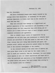 | Keywords: Ngo-dinh Diem Letter to John F. Kennedy February 23, 1963 - NARA - 193707.tif Scope and content Letter from President Diem to President Kennedy thanking him for his message concerning the Tet New Year General notes 193707 Local identifier President 1961-1963 Kennedy Office of the Personal Secretary 1961 - 1963 John F Kennedy Library NLJFK Columbia Point Boston MA 02125-3398 1963-02-23 Record group Collection JFK-POF Papers of John F Kennedy President's Office Files 01/20/1961 - 11/22/1963 Record group ARC 1166 Papers of President Kennedy President's Office Files Countries compiled 01/20/1961 - 11/22/1963 Series ARC 193654 File unit Papers of President Kennedy President's Office Files Countries Vietnam General 1963 1963 - 1963 File unit ARC 193703 Variant control numbers NAIL Control Number NLK-POF-CNTRYS-VTNMGNRAL1963-LTRDIEMTOJFK yes Other versions NARA-cooperation PD-USGov Documents in English Ngo Dinh Diem Documents related to John F Kennedy 1963 letters |