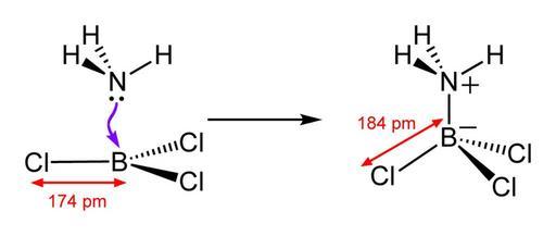 | Keywords: NH3-BCl3-adduct-bond-lengthening-2D.png Scheme illustrating the lengthening of B-Cl bonds as ammonia forms a Lewis adduct with boron trichloride Based on discussion and calculations in http //dx doi org/10 1021/ic961315b Inorg Chem 1997 36 14 3022 “3030 Own 2009-01-24 Ben Mills Benjah-bmm27 Images by Ben Mills Reactions of ammonia Boron trichloride |