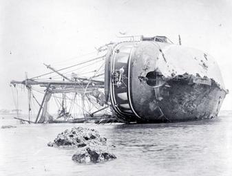 Keywords: drawing monochrome outdoor NH 42286: German Gunboat Adler. Overturned on the reef, on the western side of Apia Harbor, Upolu, Samoa, soon after the storm. Note her battered hull, well for hoisting propeller, rescue bouy mounted on her stern, and decorative windows painted on her quarters. Naval History and Heritage Command Photograph. (2016/01/03). NH 42286: German Gunboat Adler. Overturned on the reef, on the western side of Apia Harbor, Upolu, Samoa, soon after the storm. Note her battered hull, well for hoisting propeller, rescue bouy mounted on her stern, and decorative windows painted on her quarters. Naval History and Heritage Command Photograph. (2016/01/03).