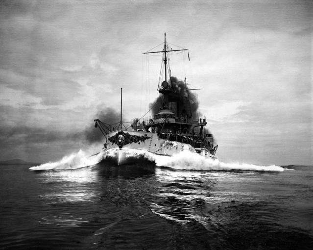 | Keywords: blackandwhite monochrome outdoor black and white NH 553: USS Connecticut (BB-1) Running speed trials off the Maine coast, 1906. Photographed by Enrique Muller. Note sailors crowding the rails, watching the photographer's boat, which is about to be swamped by the battleship's bow wave. U.S. Naval History and Heritage Command Photograph. NH 553: USS Connecticut (BB-1) Running speed trials off the Maine coast, 1906. Photographed by Enrique Muller. Note sailors crowding the rails, watching the photographer's boat, which is about to be swamped by the battleship's bow wave. U.S. Naval History and Heritage Command Photograph. |