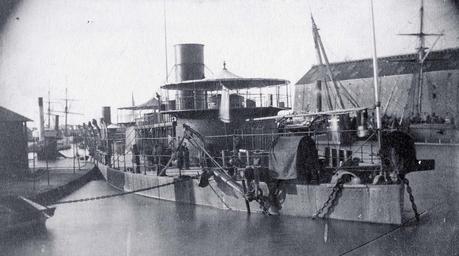 MAKE A MEME View Large Image Ships moored in the Anacostia River off the Yard's waterfront, after the end of the Civil War, about 1865.The large twin-turret monitor in the center is Miantonomoh, with the smaller monitor Montauk tied up alongside her, to the left. In ...