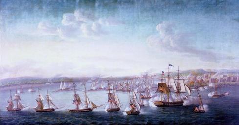 | Keywords: NH 65536-KN.jpg en Photo NH 65536-KN color Bombardment of Tripoli 3 August 1804 Oil by Michael Felice Corne sic depicting Commodore Edward Preble's squadron engaging the Tripolitan gunboats and fortifications during the afternoon of 3 August 1804 <br /> U S Navy vessels shown in the foreground are from left to right schooner Enterprise schooner Nautilus brig Argus brig Siren or Syren schooner Vixen mortar boat Dent gunboat Somers frigate Constitution Preble's flagship mortar boat Robinson and gunboat Blake <br /> Attacking the enemy flotilla in the center background are Lieutenant Stephen Decatur's three gunboats and a gunboat commanded by Lieutenant James Decatur who was killed in this action Courtesy of the U S Naval Academy Museum Annapolis Maryland U S Naval History and Heritage Command Photograph 2012-06-18 http //www history navy mil/photos/images/h65000/h65536kc htm Michele Felice Cornè 1752 “1845 The US Naval History Heritage Command asserts <div style width 730px; font-family sans-serif; font-size 1em; margin-left auto; margin-right auto > <blockquote> Public Domain - To the best of our knowledge all images referenced in the Online Library are in the Public Domain They can be used by anyone for any purpose without obtaining our permission and without payment of usage fees </blockquote> <div style text-align right; font-style italic; margin-top -1em; > http //www history navy mil/branches/org11-4 htm </div></div> Custom license marker 2012 06 18 PD-old-auto-1923 1845 PD-USGov-Military-Navy Uploaded with UploadWizard Barbary Wars Edward Preble Michele Felice Cornè 1804 |