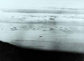 | Keywords: NH 71382: PQ-17 Convoy, July 1942. German aerial reconnaissance photo of the convoy underway for Murmansk. The presence of a British cruiser, at left, indicates that the photo was taken before 4 July, when the convoy was dispersed. NHHC Photograph Collection. NH 71382: PQ-17 Convoy, July 1942. German aerial reconnaissance photo of the convoy underway for Murmansk. The presence of a British cruiser, at left, indicates that the photo was taken before 4 July, when the convoy was dispersed. NHHC Photograph Collection. |