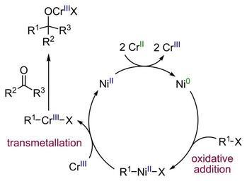 Keywords: NHK reaction mechanism.svg Reaction mechanism of Nozaki-Hiyama-Kishi NHK reaction Selfmade with ChemDraw 2007-02 Calvero PD Name reactions C-C bond forming reactions Organometallic reactions