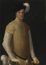| Keywords: Niccolò dell' Abbate - Ritratto di un giovane uomo che indossa un cappello piumato etc.jpg Artwork Creator Niccolò dell' Abbate Porträt eines jungen Mannes mit Federhut einem gelben Wams mit geschlitzten Ärmeln spitzen Manschetten und Kragen Seine rechte Hand ruht auf einem gefiederten Helm Portrait of a young men wearing a plumed hat a yellow doublet with slashed sleeves lace cuffs and collar resting his right hand on a plumed helmet oil canvas cm 105 76 5 object history PROVENANCE Anonymous sale 'Property from a European Private Collection' London Sotheby's 17 December 1998 lot 57;<br/>There purchased by the present owner credit line accession number http //www sothebys com/de/catalogues/ecatalogue html/2012/old-master-paintings-n08869 /r /de/ecat fhtml N08869 html+r m /de/ecat lot N08869 html/7/ Sotheby's PD-Art-100 Nicolò dell'Abate Portrait paintings of standing men Images from Sotheby's |