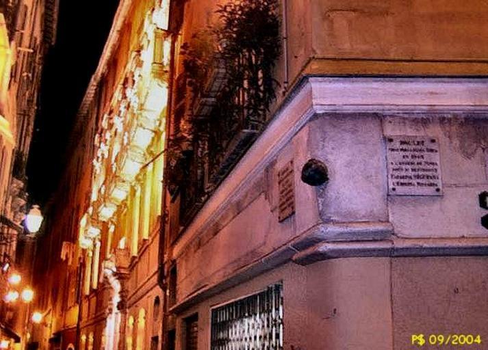 Keywords: Nice-VieilleVille-PalaisLascaris-rDroiteXrLoge.jpg Nice - Quartier de la Vieille Ville Le Palais Lascaris de nuit <br> Prise de vue à l'angle de la rue de la Loge un boulet datant de siège de 1543 est scellé à l'angle Kodak DX4330 08/2006 date d'enregistrement au Wiki Commons p semeria Nice France Own work all rights released Public domain Palais Lascaris Nice Night in Nice |