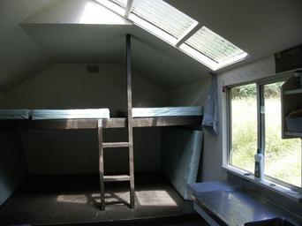 Keywords: Nichols hut 5.jpg Nichols hut W Tararua Range Tararua ; bunks and table 2016-01-06 Own Sarang Nichols Hut