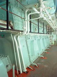 | Keywords: 'nicola' nicola industry austin & pickersgill ltd austinpickersgillltd sunderland shipbuilding sd14 southwick shipyard river wear riverwear engine room engineroom marine engineering marineengineering hawthorn sulzer engine hawthornsulzerengine maritime heritage maritimeheritage colour photograph colourphotograph engine mechanical machine ship sunderland shipyard sunderlandshipyard nut bolt plate metal steel construction october 1967 october1967 february 1968 february1968 shipbuilder commission turners ltd turnersltd progress shots progressshots development shelter deck 14,000 tons deadweight shelterdeck14000tonsdeadweight liberty ships libertyships replacement cargo engineering engine name plate enginenameplate hawthorn sulzer hawthornsulzer pipe cylinder bar rail floor platform nicola the first sd14 nicolathefirstsd14 design striking unusual remarkable Inside the engine room on ‘Nicola’ the first SD14 to be built by Austin & Pickersgill (TWAM ref. DT.TUR/4/3732B). This set celebrates the ‘Nicola’, the first in a long line of standard ships designed by the Sunderland shipyard of Austin & Pickersgill Ltd. The images document her construction from October 1967 through to her completion in February 1968. The shipbuilders commissioned the Newcastle-based firm Turners (Photography) Ltd to take weekly progress shots of the ‘Nicola’ and these images have given us a unique view of her development. She was the first SD14 to be completed (the name stands for ‘Shelter Deck 14,000 tons deadweight’) and was designed as a replacement for the surviving ‘Liberty ships’, built by American yards during the Second World War. Those Liberty ships had played a vital role in the Allied victory but by the 1960s they were fast approaching the end of their working lives. The SD14 developed by Austin & Pickersgill met the demand for economic and reliable cargo ships. The simplicity of the design meant that it could be marketed by the shipbuilders at a very competitive price. It’s success is reflected by the fact that over the course of 20 years 211 ships were built to the SD14 design by Austin Pickersgill and its licensees. Sunderland can be very proud of its remarkable shipbuilding and engineering history and the SD14 is one the City’s finest achievements. (Copyright) We're happy for you to share these digital images within the spirit of The Commons. Please cite 'Tyne & Wear Archives & Museums' when reusing. Certain restrictions on high quality reproductions and commercial use of the original physical version apply though; if you're unsure please email archives@twmuseums.org.uk Inside the engine room on ‘Nicola’ the first SD14 to be built by Austin & Pickersgill (TWAM ref. DT.TUR/4/3732B). This set celebrates the ‘Nicola’, the first in a long line of standard ships designed by the Sunderland shipyard of Austin & Pickersgill Ltd. The images document her construction from October 1967 through to her completion in February 1968. The shipbuilders commissioned the Newcastle-based firm Turners (Photography) Ltd to take weekly progress shots of the ‘Nicola’ and these images have given us a unique view of her development. She was the first SD14 to be completed (the name stands for ‘Shelter Deck 14,000 tons deadweight’) and was designed as a replacement for the surviving ‘Liberty ships’, built by American yards during the Second World War. Those Liberty ships had played a vital role in the Allied victory but by the 1960s they were fast approaching the end of their working lives. The SD14 developed by Austin & Pickersgill met the demand for economic and reliable cargo ships. The simplicity of the design meant that it could be marketed by the shipbuilders at a very competitive price. It’s success is reflected by the fact that over the course of 20 years 211 ships were built to the SD14 design by Austin Pickersgill and its licensees. Sunderland can be very proud of its remarkable shipbuilding and engineering history and the SD14 is one the City’s finest achievements. (Copyright) We're happy for you to share these digital images within the spirit of The Commons. Please cite 'Tyne & Wear Archives & Museums' when reusing. Certain restrictions on high quality reproductions and commercial use of the original physical version apply though; if you're unsure please email archives@twmuseums.org.uk |
