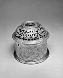 | Keywords: Nicolas Forfaict - Drum Table Clock - Walters 58227.jpg Around the sides of the drum case of this table clock are engraved personifications of the ancient cardinal philosophical virtues of Temperance Fortitude Prudence and Justice and two of the theological virtues Faith and Charity Only Hope is missing The case of this clock was personalized for its owner by the addition on the base of an engraved coat of arms possibly the Strozzi arms of crescent moons quartered with unidentified arms and the motto SEMPER Latin for forever ca 1600 Baroque gilt on brass case gilt on brass dial gilt on brass and iron movement cm 13 5 accession number 58 227 17105 George Robinson Harding London by purchase Henry Walters city Baltimore Walters Art Museum Henry Walters Acquired by Henry Walters 1911 Transcription SEMPER; Translation forever Undercover Stories in Art The Walters Art Gallery Baltimore 1980 French Clocks in North American Collections The Frick Collection New York 1982-1983 place of origin Paris France Walters Art Museum license Baroque art in the Walters Art Museum Media from the Walters Art Museum no creator template Media contributed by the Walters Art Museum needs category review Renaissance clocks |