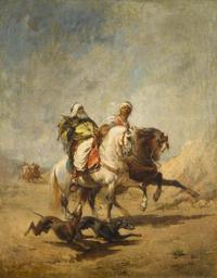 | Keywords: Nicolas Sicard - Deux Bédouins pendant la chasse.jpg Nicolas Sicard Nicolas Sicard 1846-1920 fr oil canvas cm 90 5 72 accession number object history credit line exhibition history N Sicard ~ ll signature https //www kollerauktionen ch/de/308363-0002-----1160-sicard_-nicolas-_um-1840-lyon-1160_60901 html RecPos 1 Galerie Koller Zürich; Gemälde des 19 Jahrhunderts A160 - 30 März 2012 Lot 3261 PD-old-auto-1923 1920 DEFAULTSORT Sicard Nicolas; Bedouins; Koller 2012 Nicolas Sicard Falcons in art Falconry in art Images from Koller Auktionen 19th-century orientalist paintings |