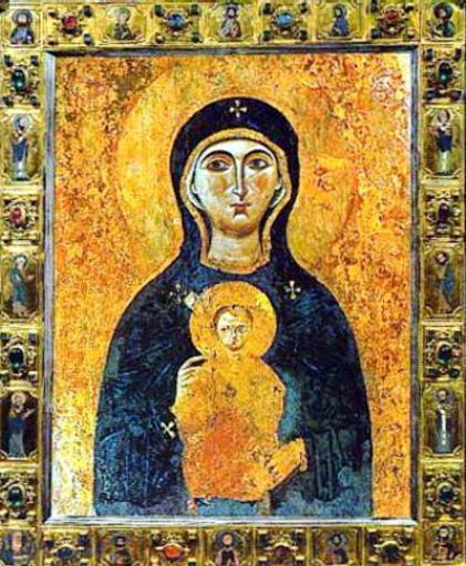 | Keywords: Nicopeia.jpg en Madonna Nicopeia ru Икона Божией ате и икопея el Φορητή εικόνα της Παναγίας της Βλαχερνιώτισσας ου μετέφεραν οι Σταυροφόροι στον Άγιο άρκο της Βενετίας το 1204 Σοφίας Σφυρόερα Κωνσταντινού ολη Πόλη της Ιστορίας Αθήνα 2006 ISBN 960-442-233-2 σελ 231 http //nesusvet narod ru/ico/icons/m_01712 htm anonimus century 10 Nicopeia PD-Art |