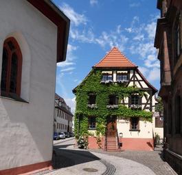 | Keywords: NiederwallufKirchgasse14ZumTreppchen.JPG de Restaurant Zum Treppchen ein Fachwerkhaus in ortsbildprägender Nachbarschaft zur katholischen Pfarrkirche in Niederwalluf in der Kirchgasse 14 own Brühl 2010-07-13 Niederwalluf Timber framing in Walluf |