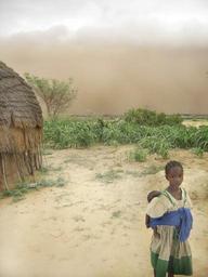 Keywords: niger girl woman baby hut sand sky clouds nature outside rural country countryside