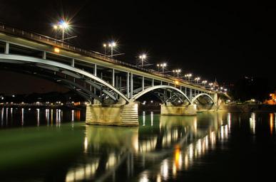 Keywords: night bridge river city cityscape landmark night city europe landscape