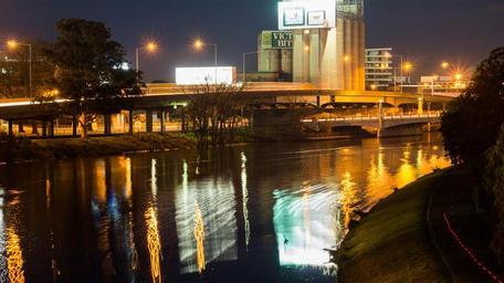 Keywords: night city lighting lights illuminated city at night melbourne industrial yarra river australia buildings river water