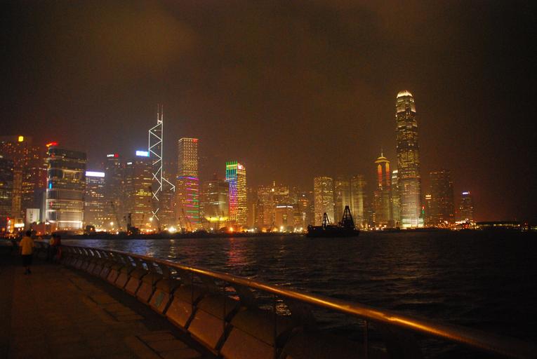 Keywords: night hong kong buildings the skyscraper superstructure city agglomeration building building glass
