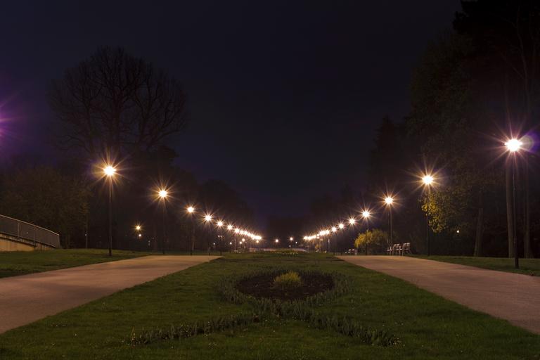 Keywords: night park dark olomouc nature path trees lights czech republic green rest