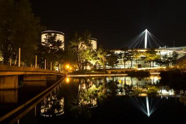 Keywords: night photograph night water car town wolfsburg mirroring lake bridge