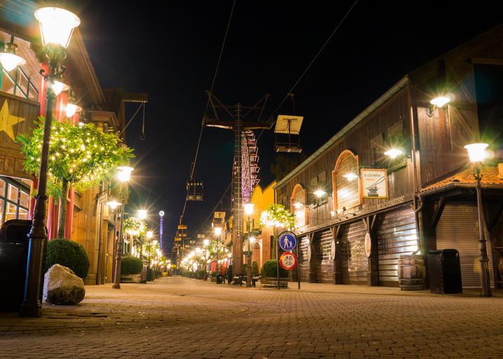 Keywords: night photograph theme park lights ferris wheel slagharen netherlands play romantic cable car deserted night leave