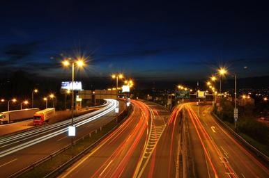 Keywords: night scene road highway traffic light lines of light long exposure city transport dark lights evening lighting