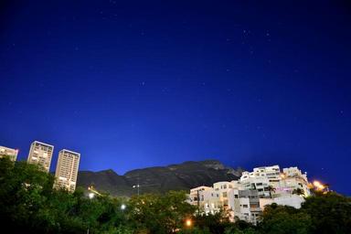 Keywords: night stars sky astronomy dark color building construction houses mountains