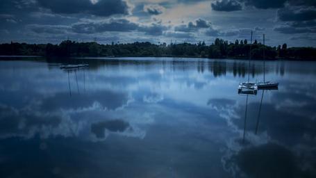 Keywords: night view boat quiet be quiet serenity hazy beautiful blues cool lake the water landscape wonderland views