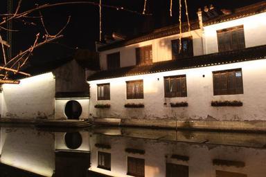 Keywords: night view the scenery zhouzhuang reflection water building houses