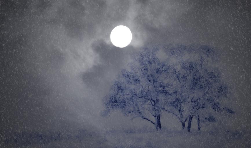 Keywords: night wintry trees snow moon snowfall snow flurry schneestrum