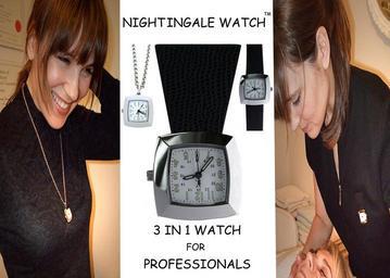 | Keywords: Nightingale Watch.jpg en The unisex multi-function Nightingale Watch is a stylish timepiece allowing the wearer to choose between wearing it as a neck watch “ on a stylish chain “ as a fob or wristwatch It is made from stainless steel embossed leather and uses reliable Japanese technology in the movement It has a 24 hour clock luminous hands and secondhand It is ideal for work and play More information is available at www nightingalewatch com own JPKGILL 2009-07-01 Watches in advertising Leather embossing Stylish |