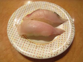 Keywords: Nigiri zushi (hamachi).jpg ハマチの握り寿司 Nigiri-zushi of Japanese amberjack ハマチ Hamachi Own 2008-04-21 Lombroso Nigirizushi Buri fish