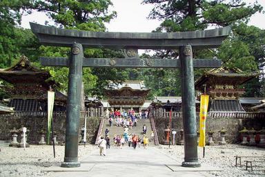 | Keywords: Nikko Toshogu Bronze Torii M3091.jpg This bronze torii 唐銅鳥居 stands in the Toshogu Nikko Tochigi Prefecture Japan a UNESCO World Heritage Site The famous carvings of the three wise monkeys who hear no evil see no evil and speak no evil are behind the photographer to the right The kami jinko is to the right The Drum Tower is visible in the background to the left of the torii and the Bell Tower to the right The Yomeimon is at the top of the stairway in the center I took the photo and contribute the file to the public domain However people and institutions may retain rights to images in it 2006-05-28 own assumed Fg2 Nikkō Tōshō-gū |