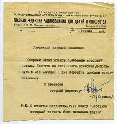 Keywords: NikMakov-radioveschanie.jpg en A letter from Moscow radio ru Письмо из главной едакции адиовещания для детей и юношества The letter not applicable 1958 own family archive PD-RU-exempt Nikolai Ivanovich Makov