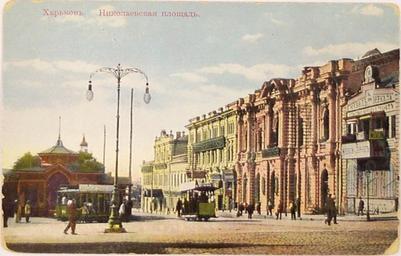 Keywords: Nikolaevskaya Square in Kharkov, Russian Empire.jpg Nikolaevskaya Square in Kharkov Russian Empire ru Вид иколаевской площади в Ха ькове вниз Видны два отк ытых вагона конки Бельгийского общества A reproduction of post cards dated early 20th century scan for original paper postcard // еп одукция почтовой ка точки начала XX века скан бумажной отк ытки 1900-1917 Russian Empire Post; на отк ытке не указан PD-old PD-RusEmpire Postcards of Kharkiv Trams in Kharkiv Nikolaevskaya Square in Kharkiv Unidentified year in Kharkiv XX century Historical trams in Ukraine |