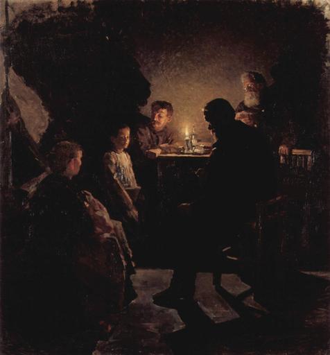 | Keywords: Nikolaj Alexejewitsch Kassatkin 001.jpg В семье абочего In der Arbeiterfamilie Oil Canvas cm 75 5 71 5 institution Russian Museum Genre works Yorck 1890-1900 Creator Nikolaj Alexejewitsch Kassatkin http //mail wikipedia org/pipermail/wikide-l/2005-April/012195 html Other versions PD-old-70 PD-Art-YorckProject Realist genre paintings Nikolai Kasatkin Chiaroscuro genre paintings | ||||