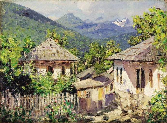 | Keywords: Nikolay Dubovskoy Village Scene 1911.jpg Artwork Creator Nikolaj Nikanorowitsch Dubowskoj en Village scene in the mountains 1911 oil canvas cardboard cm 25 4 34 9 object history credit line langSwitch Signed and dated lower right N Dubovskoy 1911 Подпись и дата сп ава внизу Дубовской N 1911 accession number http //fineart ha com/c/item zx saleNo 5008 lotIdNo 12001 Heritage Auctions 2008 06 PD-old-auto-1923 1918 Nikolay Dubovskoy 1911 paintings from Russia 20th-century mountain paintings Village paintings Images from Heritage Auctions |