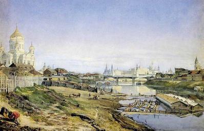 | Keywords: Nilolay Makovsky View From Embankment Of The Moskva River.jpg title View From Embankment Of The Moscow River Вид от набе ежной осквы- еки на х ам Х иста Спасителя и Каменный мост» http //www artsait ru/foto php art m/makovskyn/img/16 частная коллекция Private collection Watercolor Creator Nikolay Makovsky < 1875 PD-old-100 Nikolay Makovsky Realist genre paintings Private collections in Russia | ||||