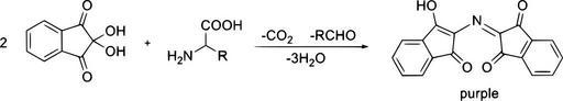 MAKE A MEME View Large Image Ninhydrin reaction.svg en svg version of Image 茚三酮反应 png own puppy8800 2008-07-09 Organic reactions PH indicators Ninhydrin