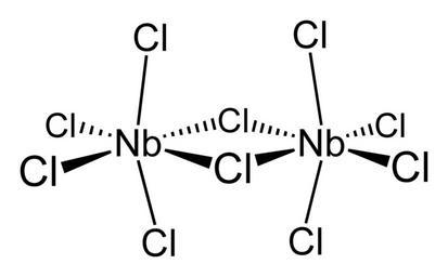 | Keywords: Niobium-pentachloride-dimer-2D.png Structural formula of the niobium pentachloride dimer Nb<sub>2</sub>Cl<sub>10</sub> X-ray crystallographic data from http //dx doi org/10 1107/S0108270191000239 Acta Cryst 1991 C47 2435-2437 own 2009-04-17 Ben Mills Benjah-bmm27 Images by Ben Mills Niobium pentachloride Dimers |