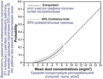 | Keywords: NIOSH-2011-03+.jpg ru Рисунок 3 из обзо а п офзаболеваний шахтё ов http //www cdc gov/niosh/docs/2011-172/pdfs/2011-172 pdf Coal Mine Dust Exposures and Associated Health Outcomes Ве оятность того что здо овый шахтё катего ия пневмокониоза 0/0 после 35 лет аботы заболеет пневмокониозом п и азной концент ации еспи абельной пыли Ве оятность того что шахтё со стажем подземной аботы 35 лет заболеет пневмокониозом катего ия 2/1 и выше п и азной концент ации еспи абельной угольной пыли вычислена по данным английского исследования 1971г Видно что п и концент ации менее 2 мг/м3 ве оятность близка к нулю а п и концент ации 16 мг/м3 близка в 70 Источник 1 4 en Figure 3 Probability that an individual starting with no pneumoconiosis category 0/0 will be classified as 2/1 or greater after 35 years of exposure to various concentrations of coal mine dust Figure 7 2 of the CCD 1 Source Jacobsen et al 4 2015-04-21 http //www cdc gov/niosh/docs/2011-172/pdfs/2011-172 pdf Coal Mine Dust Exposures and Associated Health Outcomes A Review of Information Published Since 1995 Michael Attfield et al NIOSH USA other versions PD-USGov National Institute for Occupational Safety and Health Mining Workplace safety Workplace safety of Russia Occupational diseases Miners Uploaded with UploadWizard |