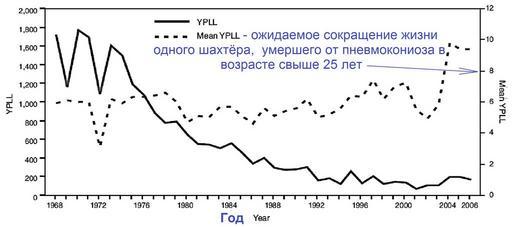 | Keywords: NIOSH-2011-15+.jpg ru Рисунок 15 из обзо а п офзаболеваний шахтё ов http //www cdc gov/niosh/docs/2011-172/pdfs/2011-172 pdf Coal Mine Dust Exposures and Associated Health Outcomes Потенциальное уменьшение п одолжительности жизни шахтё ов YPPL у шахтё ов моложе 65 лет снижается с 1500 до 200 в 2006г ; и с еднее снижение YPPL у шахтё ов уме ших от пневмокониоза в воз асте более 25 лет снижалось с 1968 до 1995г а затем начало асти Источник 42 en Figure 15 Years of potential life lost YPLL before age 65 and mean YPLL per decedent for decedents aged 25 years with coal workers pneumoconiosis as the underlying cause of death United States 1968 2006 Source CDC 42 2015-04-21 http //www cdc gov/niosh/docs/2011-172/pdfs/2011-172 pdf Coal Mine Dust Exposures and Associated Health Outcomes A Review of Information Published Since 1995 Michael Attfield et al NIOSH USA other versions PD-USGov National Institute for Occupational Safety and Health Mining Workplace safety Workplace safety of Russia Occupational diseases Miners Uploaded with UploadWizard |
