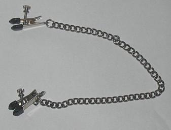 | Keywords: Nippleclamps.jpg A pair of alligator clip-style nipple clamps The clamps are connected by a length of chain which can be tugged on to increase the sexual pleasure or intensity of sensations of the wearer; some styles of nipple clamps including alligator-clip style do not include this chain The ends of the alligator clip of the clamps are covered with replaceable vinyl tips to protect the nipples of the wearer The metal stems sticking out clamp allow the tension with which they grip the nipple to be made weaker or stronger to fit the comfort of the wearer when turned to the right the tips of the nipple clmaps will be closer together when they are closed If turned to the left the tips will be wider apart These clamps were manufactured by Spartacus Enterprises Source Self-made Photographer Kit O'Connell Todfox 10 41 3 January 2006 UTC <br> Beschreibung Ein Paar Krokodilklemme Stil Nippelklemmen einige Arten von Nippelklemmen einschließlich Alligator-Clip-Stil nicht enthalten diese Kette; Die Klemmen sind durch eine Länge von Kette die zerrte kann auf die sexuelle Lust oder Intensität der Empfindungen des Trägers erhöhen verbunden Die Enden der Krokodilklemme der Klammern sind mit auswechselbaren Spitzen Vinyl abgedeckt um den Schutz Brustwarzen des Trägers Das Metall stammt herausragen Klemme erlauben die Spannung mit denen sie Halt die Brustwarze gemacht schwächer oder stärker sein um den Komfort des Trägers passen wenn nach rechts gedreht die Spitzen der Brustwarze clmaps wird näher zusammen wenn sie geschlossen sind Wenn nach links gedreht wird die Spitzen werden weiter auseinander Diese Klemmen wurden hergestellt Spartacus Unternehmen Quelle Self-made Fotograf Kit O'Connell Todfox 10 41 3 Januar 2006 UTC Nipple clamps Clamps with screws |