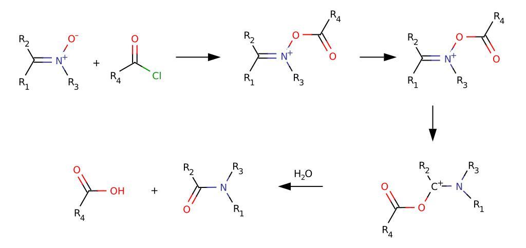 | Keywords: Nirtones.Acylation+Rearrangement.svg en Acylation of nitrones and rearrangement O-acylnitrones to amides ru Ацили ование нит онов с последующей пе ег уппи овкой O-ацилнит онов в амиды own Kurgus 2008-08-16 ---- N B Strange rendering of the file at this page but with 300-1000px widh looks well 600 px ---- Nitrones Rearrangement reactions Amide formation reactions Amides Acyl halides | ||||