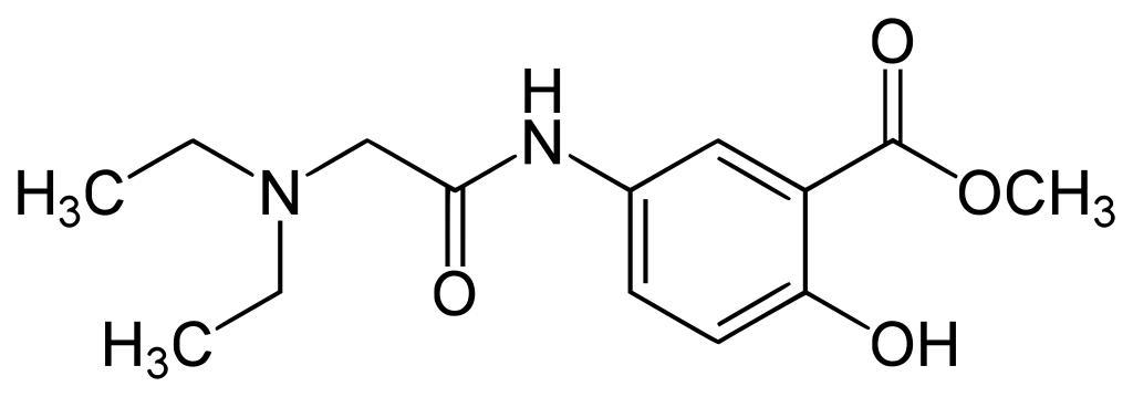 | Keywords: Nirvanine.svg en Nirvanine; methyl 5- 2-diethylaminoacetyl amino-2-hydroxybenzoate de Nirvanin; 5- Diethylamino acetamido -salicylsäuremethylester own Yikrazuul 2008-08-16 Anesthetics Tertiary amines Salicylate esters Un-N-substituted anilides Methyl esters |